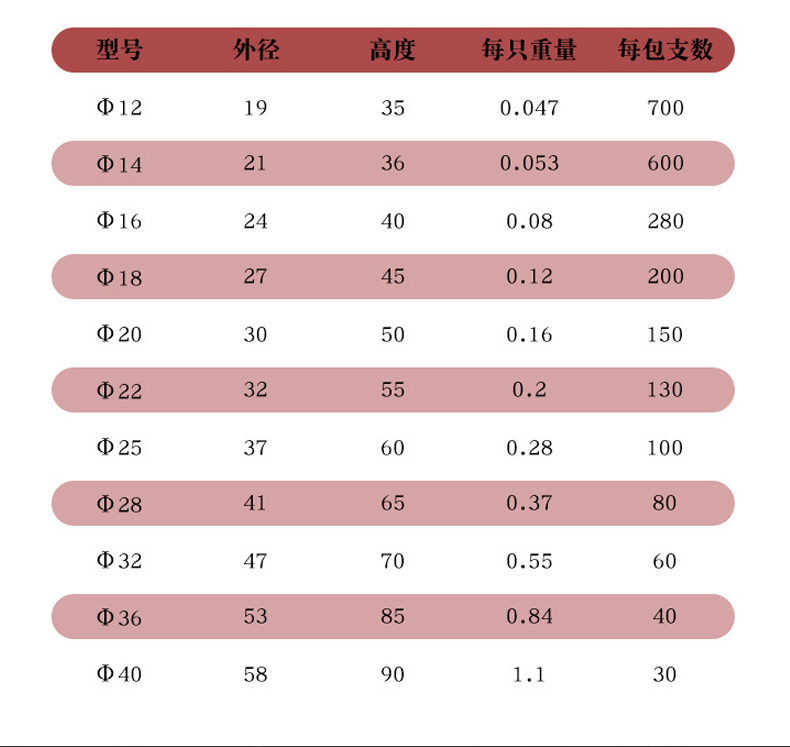| ф(㎜) | 20 | 22 | 25 | 28 |