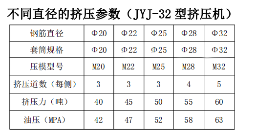 7.壓力一定要結合擠壓參數表擠壓。(附參考擠壓參數表)